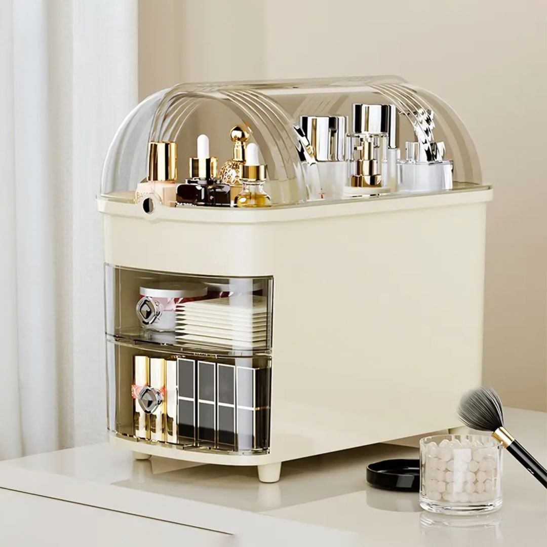 حافظة مكياج أنيقة بغطاء شفاف توفر لكِ تنظيمًا مثاليًا لمستحضرات التجميل والعطور مع حماية كاملة وأناقة في كل زاوية