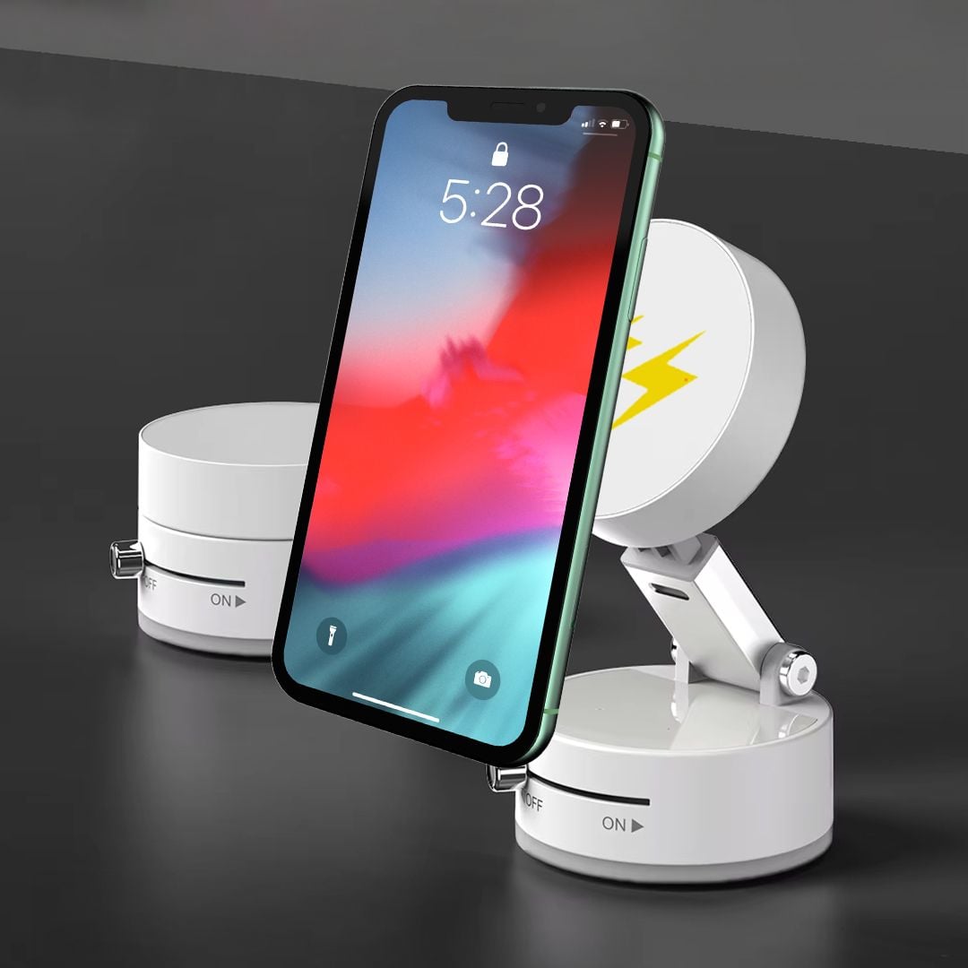 حامل هاتف مغناطيسي بقاعدة شفط قوية، يوفر ثباتًا مثاليًا وسهولة في الاستخدام بيد واحدة، مع إمكانية تعديل الزاوية لتناسب احتياجاتك سواء في السيارة، المكتب، أو المنزل