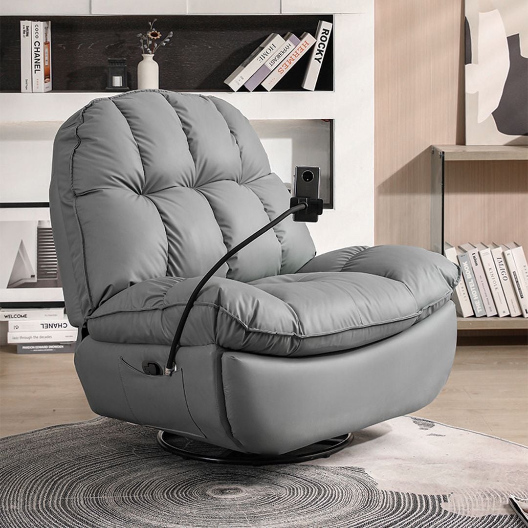 كرسي هزاز قابل للدوران 360 درجة مع حامل للهاتف مناسب للاستخدام داخل المنزل للاسترخاء والجلوس ، يتم ضبط وضعية الكرسي يدوياً