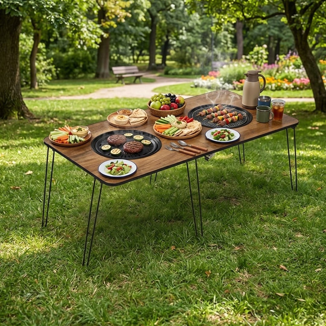تمنحك الطاولة مستوى مدروسًا يضمن راحة مثالية سواء كنت تجلس أرضيًا أو تستخدم الكراسي الخارجية. تصميم عملي يجعل الطهي والمشاركة في الجلسة أكثر سهولة وراحة دون انحناء مزعج.