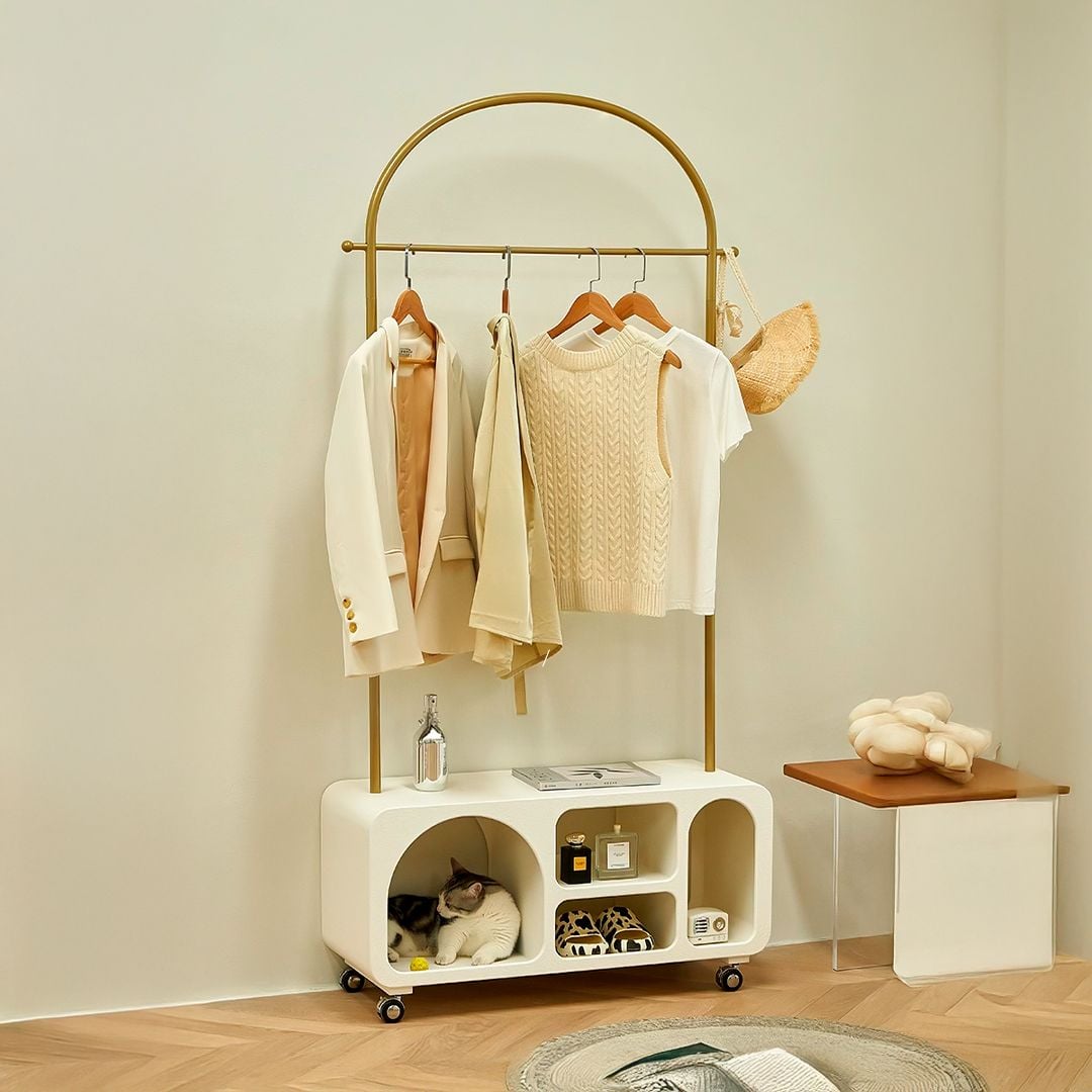 ستاند يتميز بتصميم كلاسيكي وهيكل متين يناسب جميع أنماط الديكور، مع سعة تخزين كبيرة لتعليق الملابس وتخزين الأحذية والحقائب. مثالي للمنازل والمكاتب أو يمكن استخدامه على المداخل كقطعة ديكور وستاند معاطف