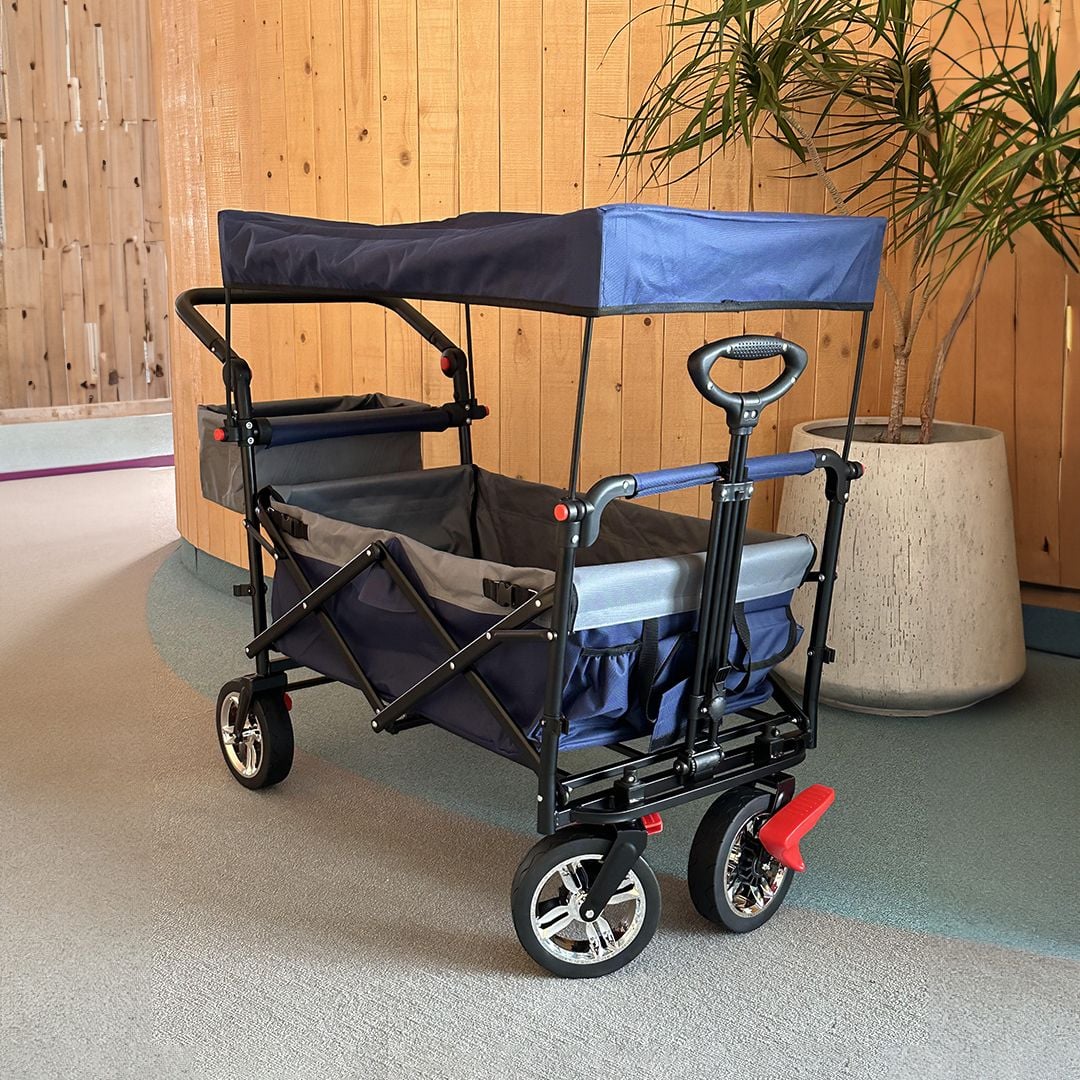 عربة للتخييم مع مظلة بأربع عجلات قوية ومتينة ، يمكن استخدامها للرحلات او لنقل المعدات